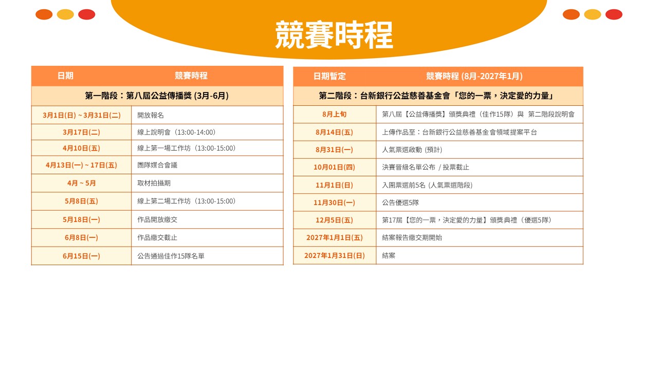 第八屆公益傳播獎-競賽時程